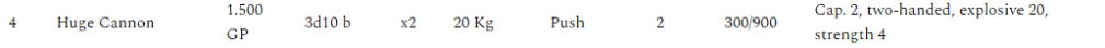 - The Ship Cannons all fire concurrently at Initiative Count 1. They are “Huge Cannons” from the weapons page, and there are 4 on each of the two ships. Because they have a capacity of 2, they fire on turns 1 and 2 and must be reloaded on turn 3.